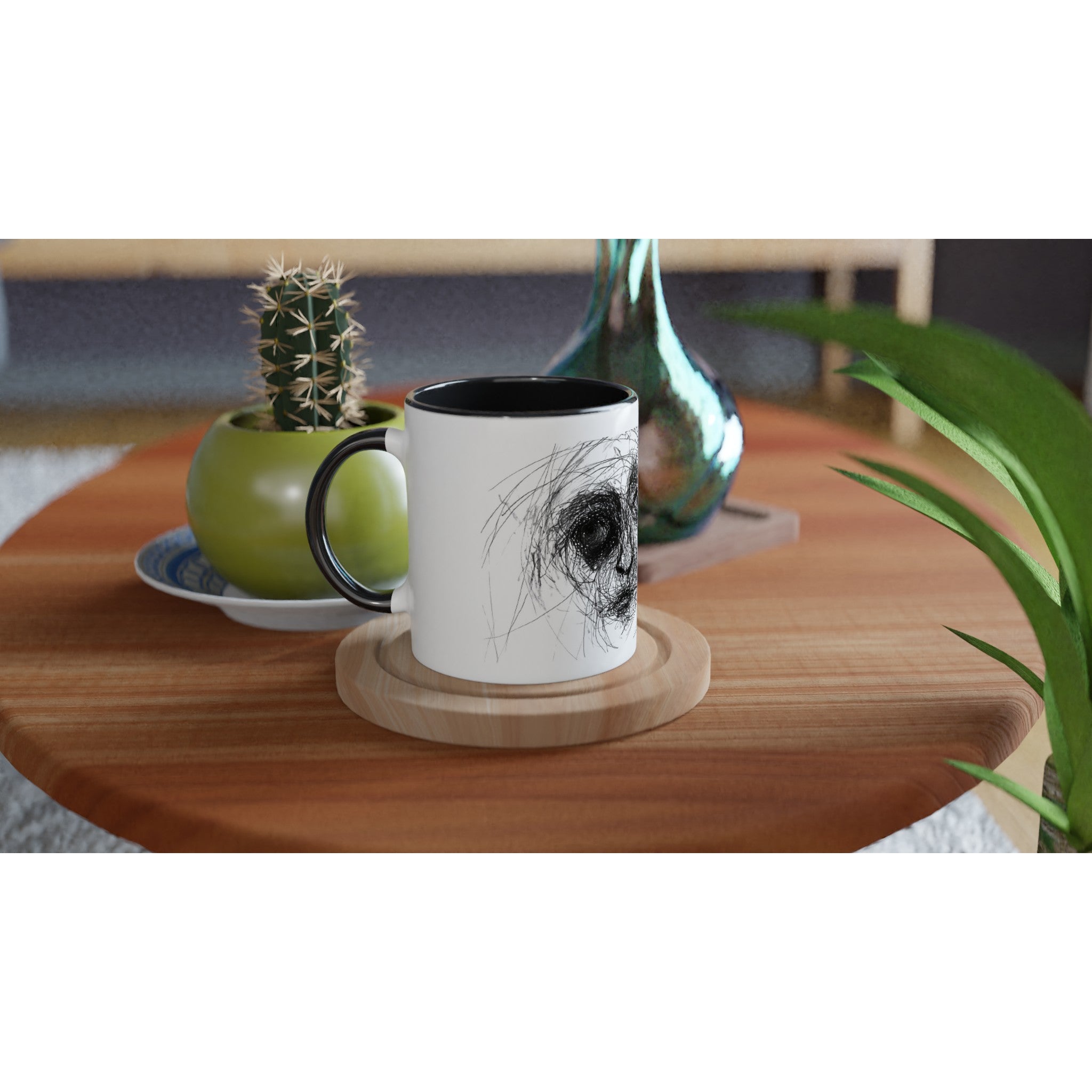 Esta bonita caneca de cerâmica é perfeita para qualquer momento do dia. Seja para o seu café da manhã, um chocolate quente ou qualquer outra bebida quente que aprecie. A caneca é branca brilhante com uma borda, interior e pega coloridos. As impressões saem lindas e vívidas nela. A impressão mantém a sua qualidade e brilho quando utilizada tanto no micro-ondas como na máquina de lavar louça.